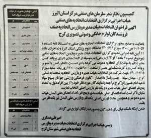 آگهی فراخوان انتخابات هیئت مدیره و بازرس اتحادیه لوازم خانگی کرج
