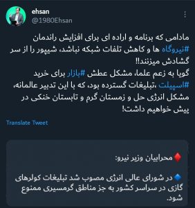گویا به زعم علما، مشکل عطش بازار برای خرید اسپیلت، تبلیغات گسترده بود، که با این تدبیر عالمانه، مشکل انرژی حل و زمستان گرم و تابستان خنکی در پیش خواهیم داشت!