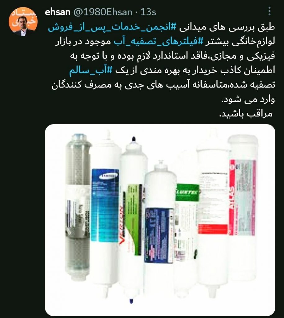 طبق بررسی‌های میدانی انجمن خدمات پس از فروش لوازم خانگی، بیشتر فیلترهای تصفیه آب موجود در بازار فیزیکی و مجازی، فاقد استاندارد لازم بوده و باتوجه به اطمینان کاذب خریدار به بهره‌مندی از یک آب سالم تصفیه شده، متاسفانه آسیب‌های جدی به مصرف‌کنندگان وارد می‌شود.