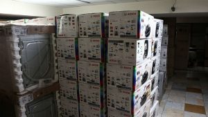 از این انبار تعداد ۴یخچال، ۴لباسشویی، ۳۶جاروبرقی، ۱۳چای ساز و تعدادی ظروف آشپزخانه ضبط و توقیف شده است.