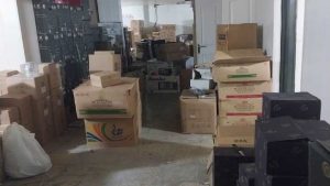 از این انبار مقادیری لوازم برقی و ظروف شیشه‌ای با برندهای ایرانی ضبط و توقیف شده است.