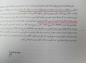 مهدی میراشرفی در نامهای به معاون وزیر اقتصاد پیرامون ماجرای ۴۲۰کانتینر لوازم خانگی بوش، عنوان کرد: