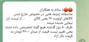 ظرف ۵۰روز گذشته هیچگونه تخصیص ارزی به برخی کالاهای لوازم خانگی داده نشده و شرکت‌ها در حال اطلاع رسانی تغییر قیمت محصولات از ارز نیمایی به دلار آزاد هستند.
