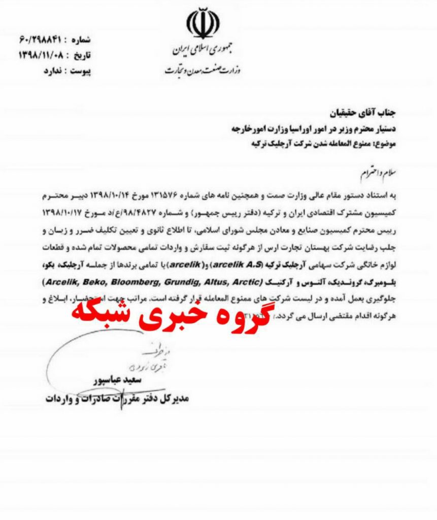 در روزهای اخیر هیئتی از آرچلیک ترکیه با یکی از شرکتهای حوزه لوازم خانگی ایران مذاکراتی داشته است اما باید در جریان بود که شرکت آرچلیک در ایران ممنوع المعامله است.