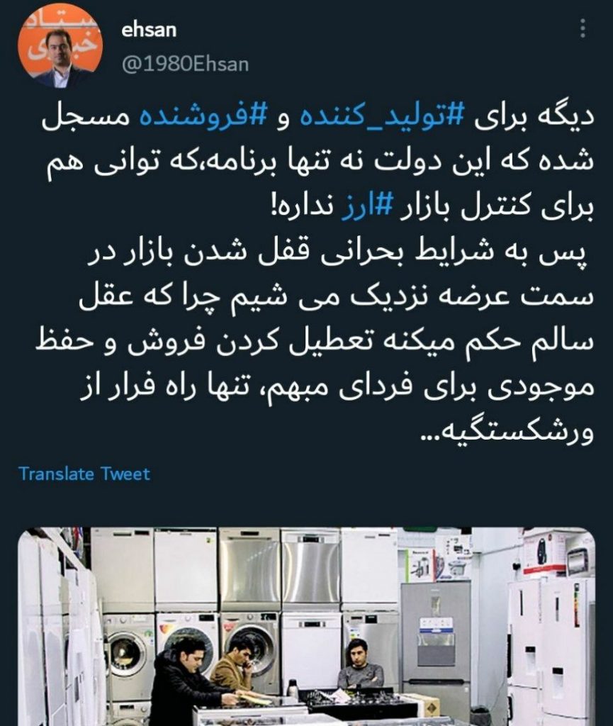 دیگه برای تولیدکننده و فروشنده مسجل شده که این دولت نه تنها برنامه، که توانی هم برای کنترل بازار ارز نداره!