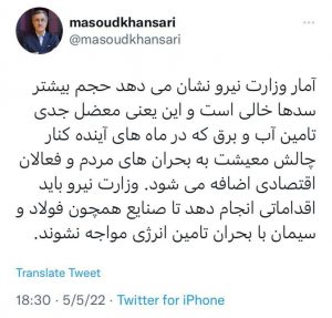 مسعود خوانساری، نایب رئیس اتاق ایران در توئیتی عنوان کرد: