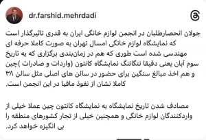 فرشید مهردادی از فعالین صنعت لوازم خانگی، نوشت: