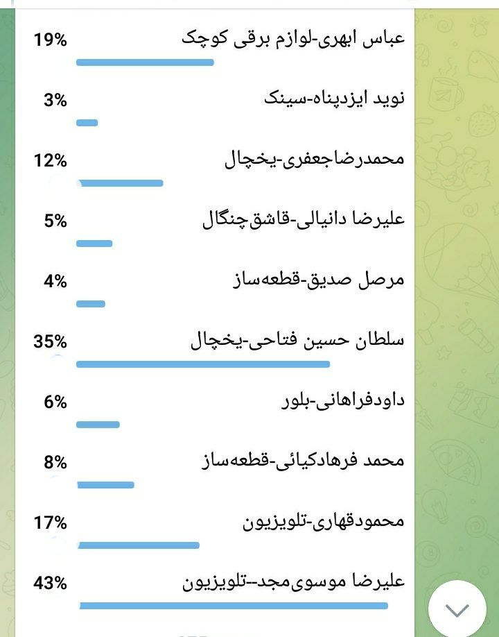 در نظرسنجی شبکه پرسیده بودیم که از میان اسامی شاخص مطرح شده به عنوان نامزدهای انتخابات هیئت مدیره انجمن صنایع، کدام افراد را برای نمایندگی کل صنعت لوازم خانگی مناسبتر میدانید؟