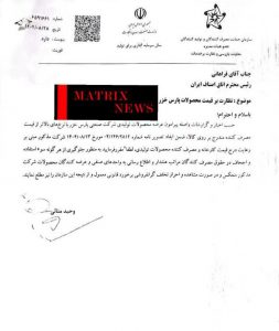 نامه سازمان حمایت در خصوص قیمت محصولات شرکت پارس خزر!