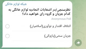 نظرسنجی/در انتخابات اتحادیه لوازم خانگی به کدام جریان و گروه رای خواهید داد؟