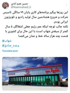 حسین نعیم‌آبادی مدیرعامل شرکت شهاب نوشت: