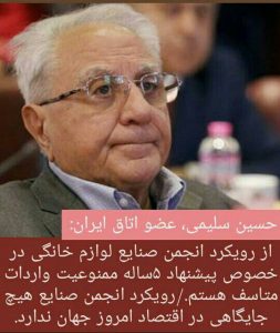 از رویکرد انجمن صنایع لوازم خانگی در خصوص پیشنهاد ۵ساله ممنوعیت واردات متاسف هستم./رویکرد انجمن صنایع هیچ جایگاهی در اقتصاد امروز جهان ندارد.