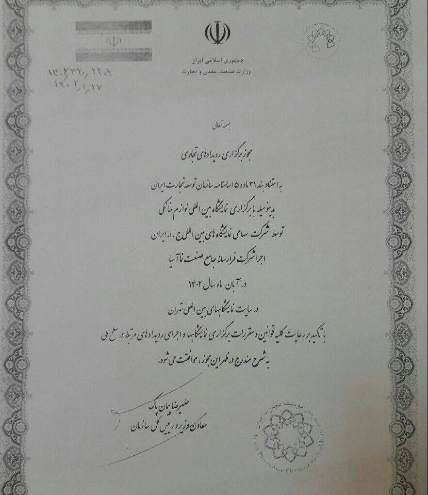 به استناد بند۳۱ ماده۵ اساسنامه سازمان توسعه تجارت، با برگزاری نمایشگاه بین‌المللی لوازم خانگی توسط شرکت نمایشگاه‌ها و اجرای شرکت فرا رسانه جامع صنعت نما آسیا موافقت شد.