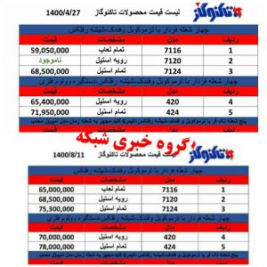 لیست قیمت جدید شرکت تاکنوگاز صبح امروز منتشر شد که نسبت به لیست قبلی این شرکت در ۲۷تیر، ده درصد افزایش قیمت را نشان میدهد.