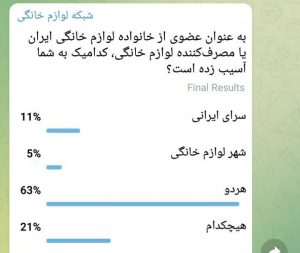 در آخرین نظرسنجی شبکه، ۷۹درصد مشارکت‌کنندگان از فروشگاه‌های سرای ایرانی و شهر لوازم خانگی آسیب دیده‌اند.
