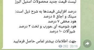 مرحله سوم افزایش قیمت استیلالبرز انجام شد. سومین مرحله افزایش قیمت محصولات استیلالبرز (در دیماه) روز گذشته با موفقیت به انجام رسید!