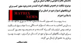 شکایت اتاق اصناف از فروشگاه‌های اسنوا و دوو! اتاق اصناف استان مرکزی طی نامه‌ای به دادستان عمومی و انقلاب این استان از فروشگاه‌های اسنوا و دوو شکایت کرد! به گزارش ماتریکس، در این نامه بر دو محورِ تبلیغات گمراه‌کننده و عدم وجود مجوز برای این فروشگاه‌ها تاکید شده است.