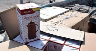 توقیف لوازم خانگی در شوش یک انبار لوازم خانگی به اتهام قاچاق در شهر شوش توقیف شده است. از این انبار ۱۹۳۰گوشت‌کوب برقی، ۵۶۴همزن برقی، ۲۴۶خردکن برقی، ۵۴۸اسنک‌ساز، ۸۰آسیاب برقی، ۴۸۰فلاسک، ۲۸۸شیشه فلاسک و… ضبط و توقیف شده است. ارزش این کالاها سه میلیارد تومان اعلام شده است.