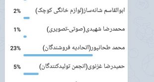 نظرسنجی/کدام نامزد را برای دبیرکل مناسبتر میدانید؟ اسامی زیر در محافل مختلف به عنوان نامزدهای انتخابات دبیرکل لوازم خانگی ایران مطرح شده است، از میان نامزدهای مطرح شده کدام فرد را برای مسئولیت دبیرکل مناسبتر میدانید؟ محمدحسین اسلامیان نویدایزدپناه عباس دمرچلی ابوالقاسم شانهساز محمدرضا شهیدی محمد طحانپور حمیدرضا غزنوی مهدی …